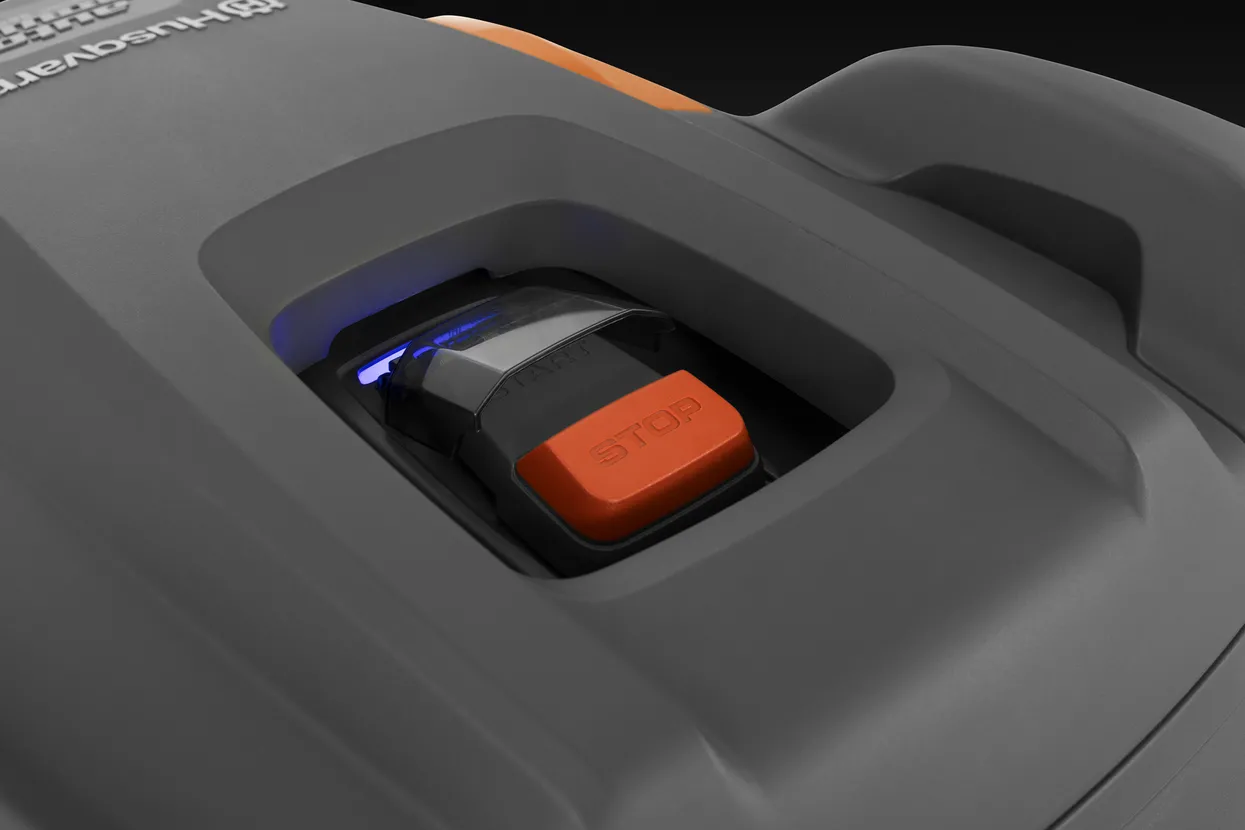 Interfață adaptată pentru manevrare profesională, respectiv toate setările și comenzile gestionate de la distanță prin aplicația pentru smartphone Husqvarna Fleet Services sau prin PC/tabletă. Comenzi pe produs. Indicator de stare cu LED și funcționalitate START/ STOP (PORNIRE/ OPRIRE). Simplifică utilizarea pentru utilizatorii neexperimentați și reduce impactul grav asupra produsului în caz de vandalism.