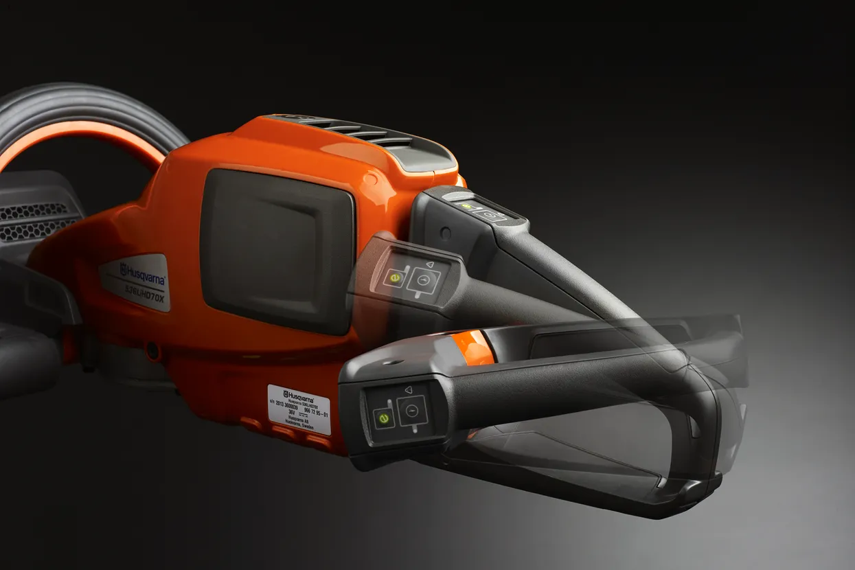 Mânerul posterior poate fi acționat în mai multe poziții, pentru a facilita tăierea laturilor și a părții superioare a gardurilor vii.