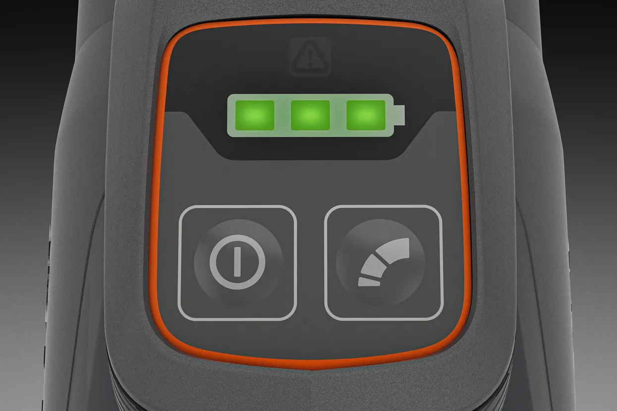 Bucurați-vă de control total și lucrați eficient cu interfața digitală Husqvarna Aspire™. Interfața digitală vă permite să porniți și să opriți ușor utilajul cu o apăsare de buton. Consultați comod starea de încărcare a acumulatorului uneltei dvs. direct pe afișaj, pentru a vă putea planifica lucrările în mod eficient și încărcați-l numai când este necesar.